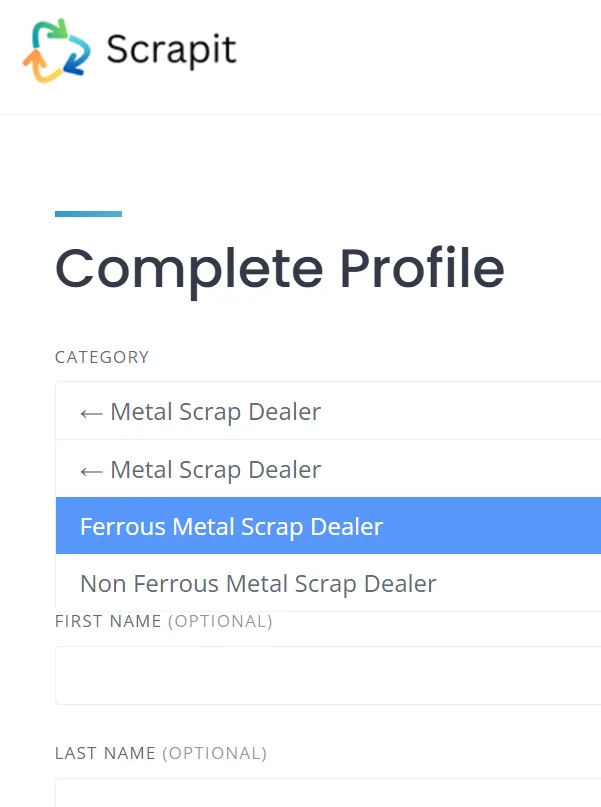 For example: If you are metal scrap dealer and you deal with ferrous metal scrap then you can select “Metal Scrap Dealer” and then select “Ferrous Metal Scrap Dealer” as shown below in the image