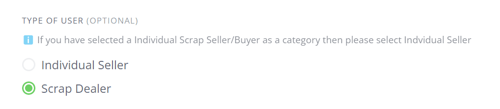 For example: If you are metal scrap dealer and you deal with ferrous metal scrap then you can select “Metal Scrap Dealer” and then select “Ferrous Metal Scrap Dealer” as shown below in the image
